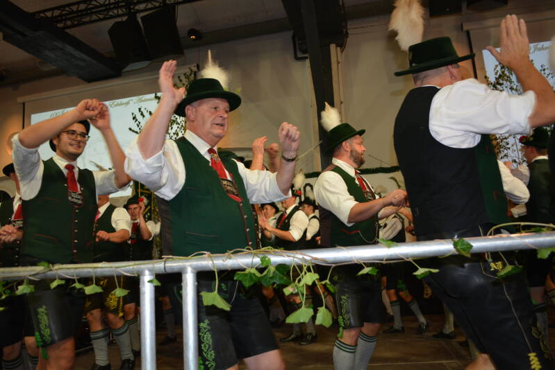 Über 30 Schuhplattler waren bei der „Ambospolka“ auf der Bühne, darunter auch Bürgermeister Klaus Schmid