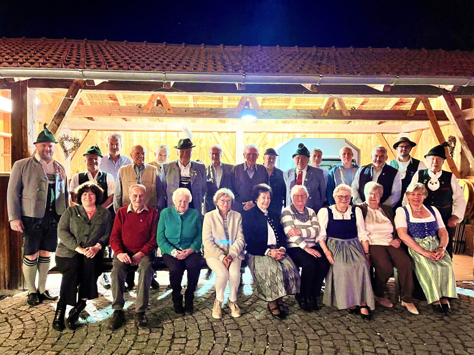 Foto: Die für ihre langjährige Treue zum Trachtenverein „Edelweiß“ Antersdorf Geehrten mit 1. Vorstand Sebastian Schmid (stehend, links) und 2. Vorstand Lukas Feichtinger (stehend, 2. v. rechts). Für 80 Jahre Zugehörigkeit wurde Ehrenmitglied Josef Mini (in der Mitte stehend) ausgezeichnet.