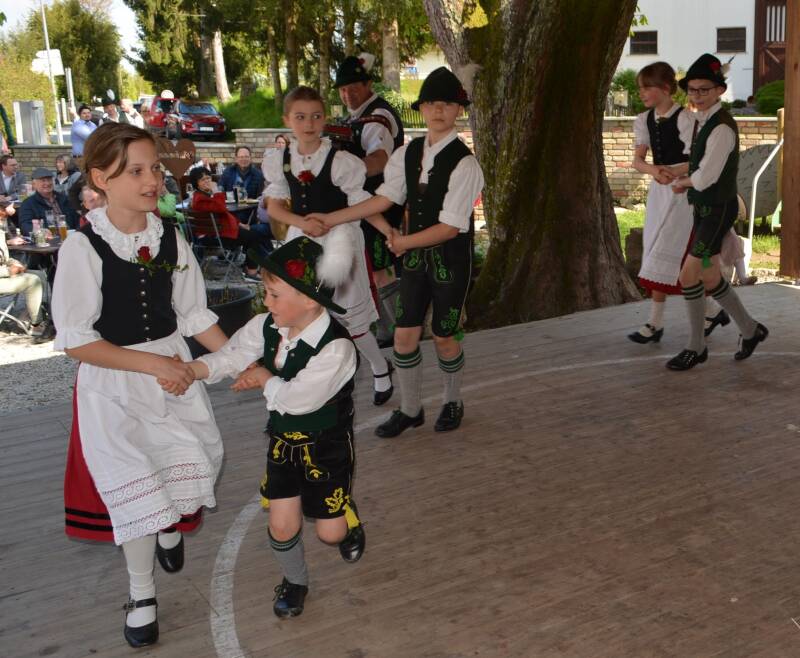 Antersdorf (cs). Am sonnigen Sonntag, einen Tag vor Beginn des Wonnemonates Mai, stellten die Antersdorfer Trachtler beim „Murauer“ wieder einen Maibaum auf. Mit Girlanden, Kränzen, Krone und blau-weißen Bändern war der Stamm geschmückt, der im letzten Jahr dem Trachtenverein „Edelweiß“ Antersdorf von Udo Eszes gespendet worden war. Viele Trachtler und Gäste fanden sich zu dieser Brauchtumsveranstaltung ein und mittels Schwaiberl und technischer Unterstützung durch Hans Sachs wurde unter Regie von Christian Wimmer der Maibaum in die Senkrechte gebracht. Mit Applaus wurden die Aufsteller belohnt und Vorstand Sebastian Schmid bedankte sich für das Mitmachen und Mitfeiern. Auf der hölzernen „Trachtlerbühne“ im Wirtsgarten traten die verschiedenen Gruppen des Vereins auf, die Kindergruppe, die große Plattler- und Tanzgruppe, die Schuhplattler und im Garten verteilt die Goaßlschnalzer, musikalisch begleitet von Hilde Strauch und Ludwig Huber.